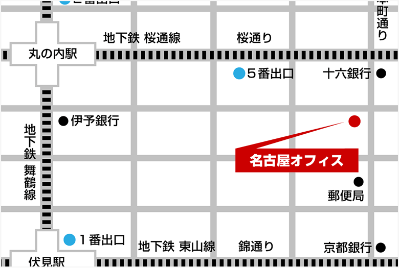 〒460-0003 愛知県名古屋市中区錦2-5-12 パシフィックスクエア名古屋錦5F