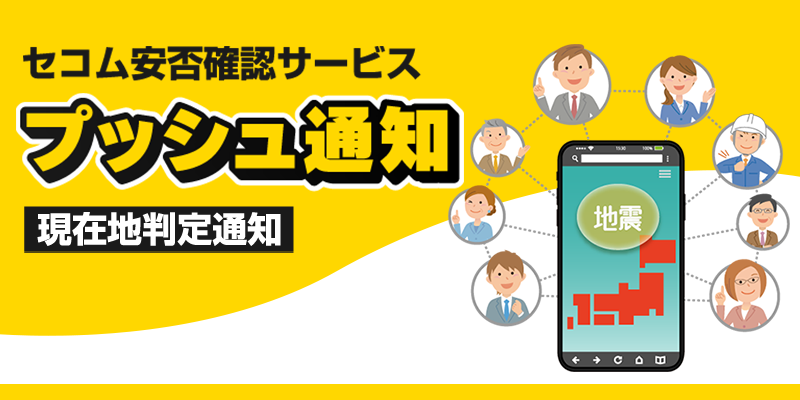 「セコム安否確認サービス」は、地震・洪水・台風(風水害)・感染症・インフラ障害などの発生時に社員・家族の安否確認や事業所の被災確認の初動を速やかに把握できるサービスです。気象などの特別警報(大雨、大雪、暴風雪、暴風、波浪、高潮)、大津波警報、噴火警報、弾道ミサイル情報などのJ-ALERT(Jアラート:全国瞬時警報システム)発動時にもご活用いただけます。