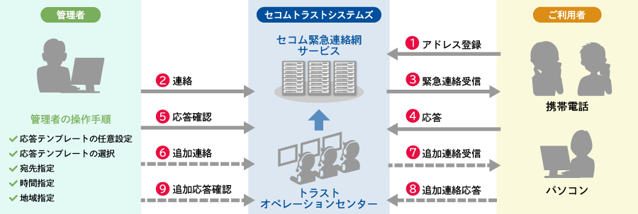 - セコムの緊急連絡のノウハウを詰め込んだ緊急連絡網サービス。
