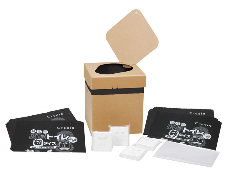 本体1個・底板1個・便座1個・フタ1個・袋(消臭シート付処理袋)20枚・ティシュー50組4個・ゴミ袋1枚