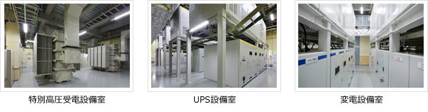 安定した電源供給を確保するため、2か所の変電所からの本線・予備線方式の特別高圧受電設備を導入。各種電源設備はN+1の冗長構成を採用しています。また、変電・UPS 設備の2 段積み設置により、電力負荷の増加に対応するための増設スペースを確保しています。