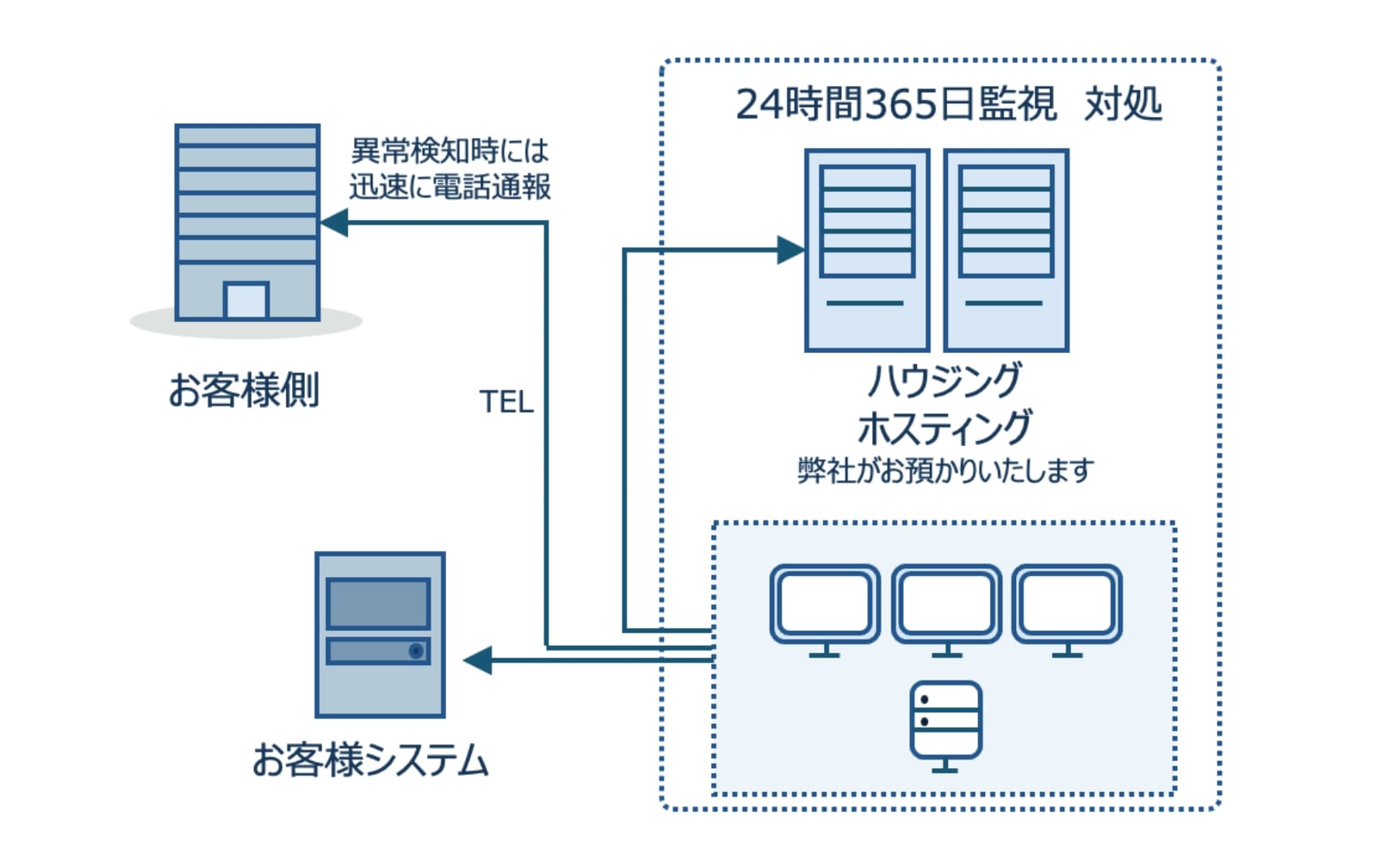 異常検知時はお客様へ通知すると共に迅速な対応と進捗管理を行い、早期復旧と再発防止に努め、システムの安定稼動と高信頼性を確保いたします。
