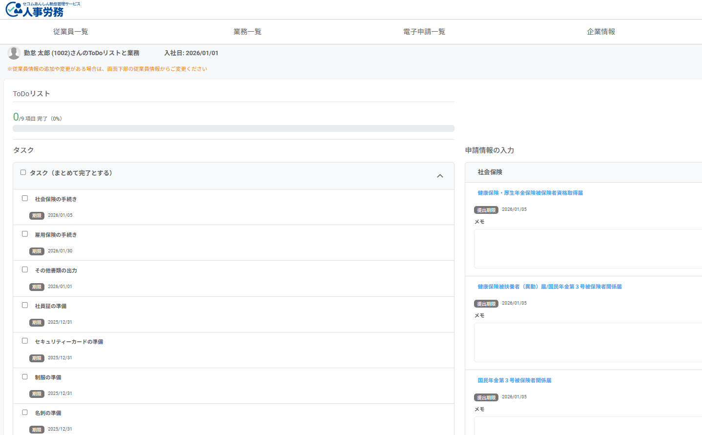 社会保険手続きなどは重要でありながら「誰がやっても同じ結果であるべき」業務で、システム化との相性が高い領域です。ここをシステム活用により効率化できれば、入社ラッシュ期に毎日手続き画面と向き合う状態から卒業できます。