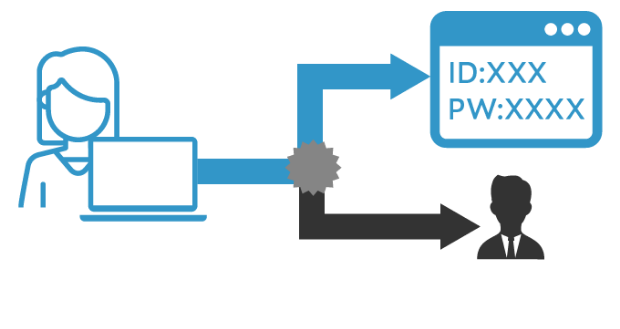 悪意ある第三者が偽サイトを作り、虚偽の情報を流したり機密性の高い情報を盗んだりすること。
