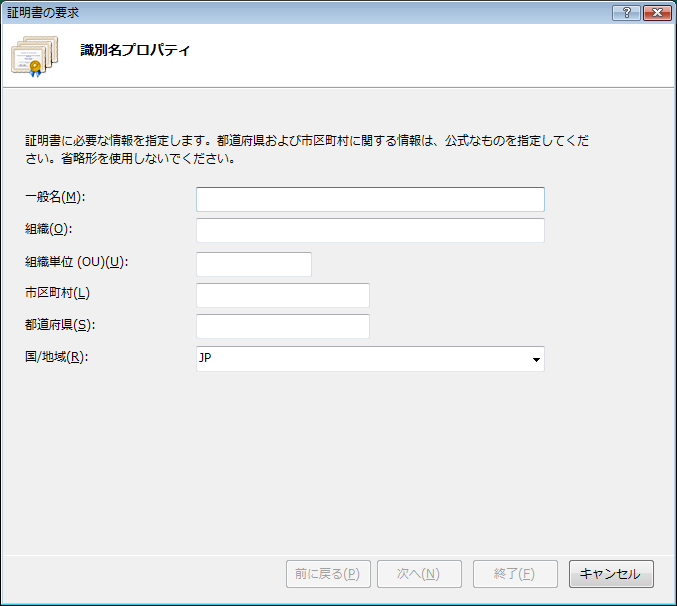 - 鍵ペア/CSRの生成 Microsoft IIS 7.x 新規/更新用