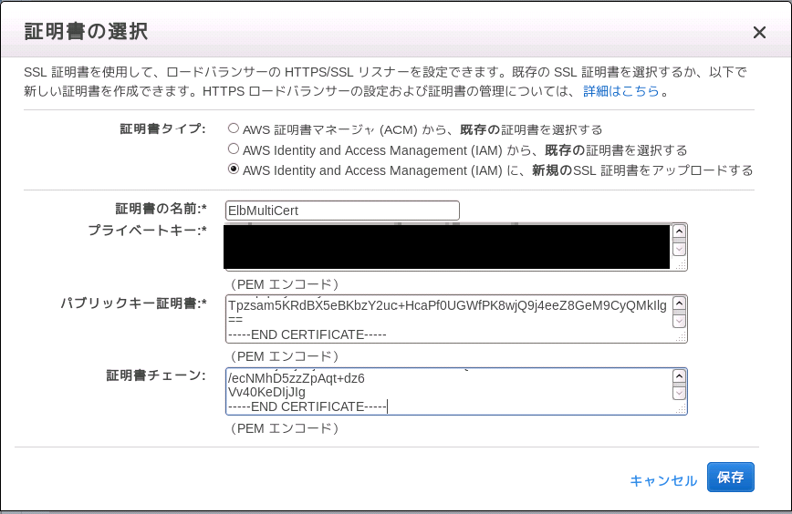 - 証明書の設定AWS Elastic Load Balancing 新規/更新用