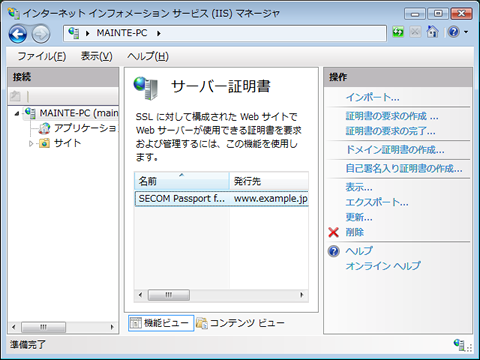 - 証明書の設定Microsoft IIS 7.x 新規/更新用