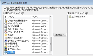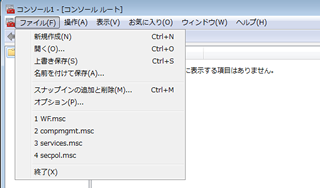 スタートの“プログラムとファイルの検索”で「 MMC 」と入力しMMCコンソールを立ち上げます。