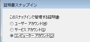 “証明書のスナップイン”で「コンピューター アカウント(C)」の選択