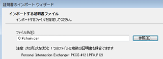 ※バックアップファイル (「.pfx」 ファイル) のインポート