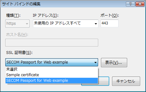 [SSL証明書(S)]プルダウン・リストからインストールする証明書を択一してください。