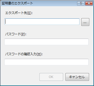 [エクスポート先(E)][パスワード(P)][パスワードの確認入力(M)]を指定して、[OK]ボタンを実行してください。