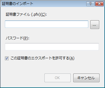 [証明書ファイル(.pfx)(C)][パスワード(P)]を指定します。