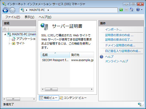 画面中央にある [サーバー証明書]アイコンを実行してください。画面の中央と右の表示が変わります。