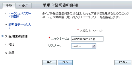 [ニックネーム]にサーバー証明書の名称を入力してください。