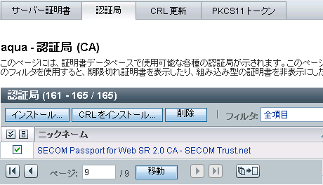 ページを遷移し、認証局の一覧に表示される[SECOM Passport for Web SR 2.0 CA - SECOM Trust.net]を選択してください。