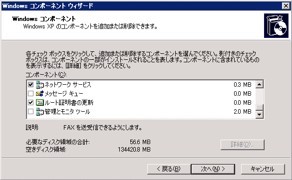 [ Windows コンポーネントの追加と削除(A)] をクリックします。