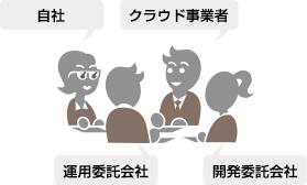 クラウド運用体制(社内関連部門、運用・開発委託先等)、利用状況等の確認を行います。
