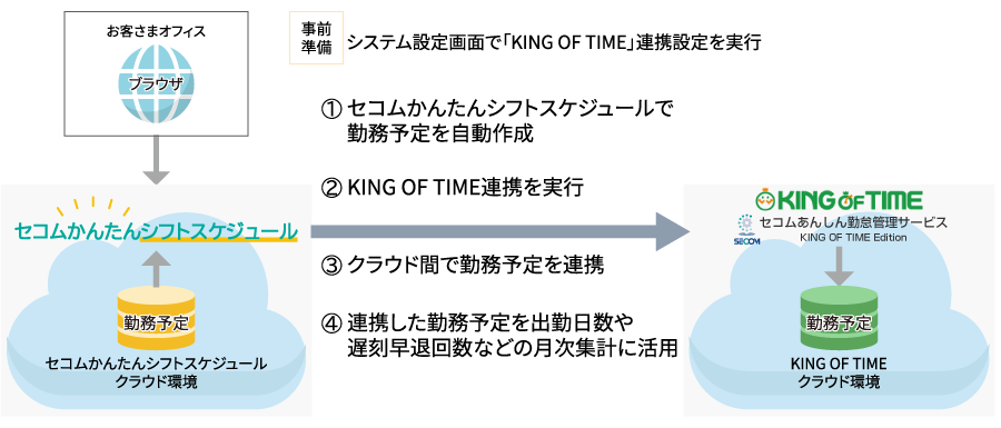 勤務シフト表自動作成サービス「セコムかんたんシフトスケジュール」と勤怠管理システム「KING OF TIME」がサービス連携を開始