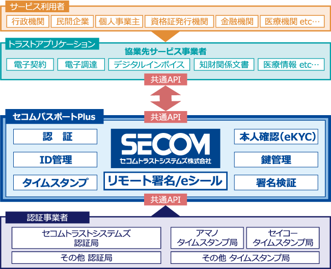 今回採用となった「セコムパスポート Plus」は、非対面での取引や紙文書の電子化を「安全・安心」に実現するために、リモート署名技術を活用した、電子署名・タイムスタンプを実施する機能、署名検証機能を提供するプラットフォームです。「セコムパスポート Plus」をご活用いただくことにより、各種業務のデジタル化を安全に実現することが可能となります。